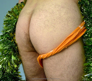 Look...it's that rather loose orange fundoshi with green tinsel…..
